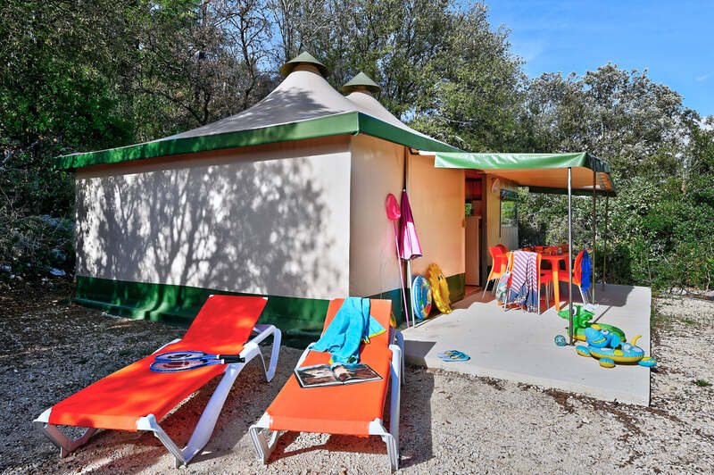 À proximité immédiate du camping, la rivière Cèze dévoile des plages privées aménagées spécialement pour les vacanciers. Ces espaces préservés et accessibles à pied depuis le domaine permettent de profiter pleinement du cadre naturel : baignade dans une eau limpide, sieste à l’ombre des arbres ou pique-nique au bord de l’eau. C’est le lieu idéal pour se reconnecter à la nature, loin de l’agitation. Le charmant village de Barjac, situé à quelques kilomètres seulement, complète cette parenthèse enchantée. Avec ses ruelles pavées, son château Renaissance et son marché provençal animé, il invite à la découverte et à la flânerie. Barjac est aussi un point de départ idéal pour explorer le Gard et ses trésors patrimoniaux, comme le Pont du Gard, les grottes de la Cocalière ou les vignobles alentours.